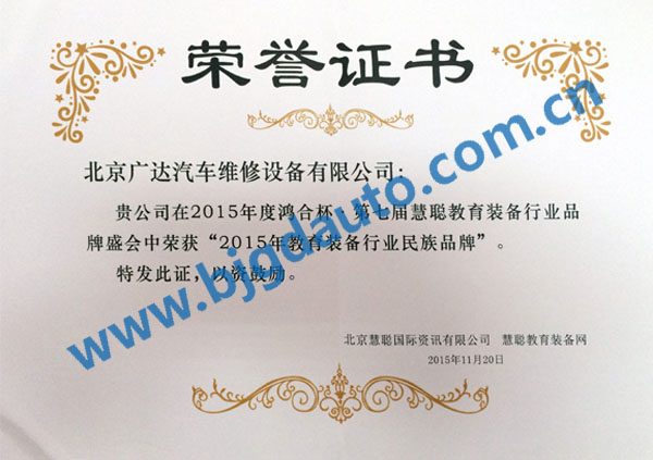 • 2015民族品牌證書